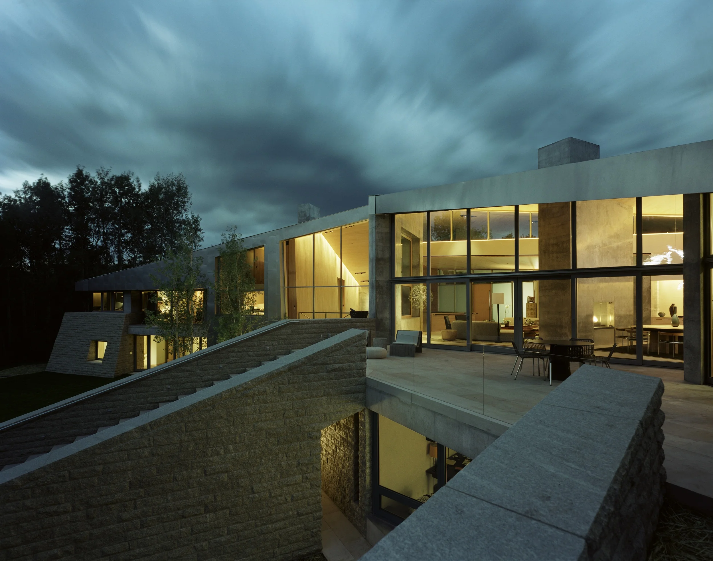 Private residence features metallic gray powder-coated aluminum clad exterior with Hard Maple wood interior windows and doors.